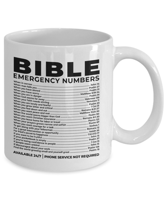Bible Emergency Numbers Coffee Mug Christian Gift Idea