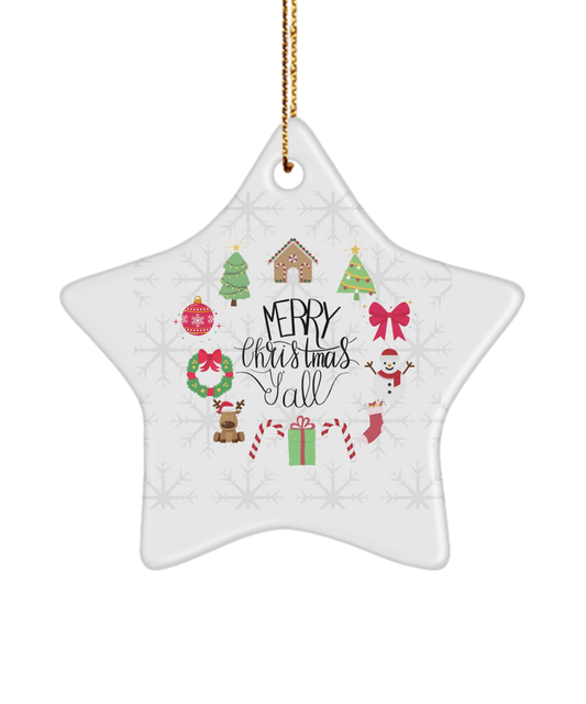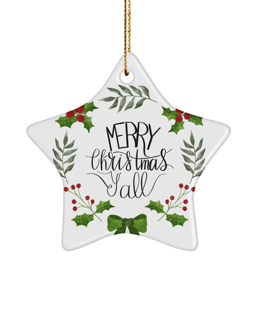 Merry Christmas Y'all Funny Christmas Ceramic Ornament for Family Tree Hanging (version 2)