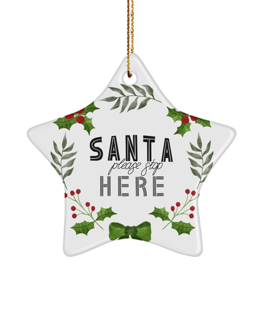 Santa Please Stop Here Funny Christmas Ceramic Ornament for Family Tree Hanging (version 2)
