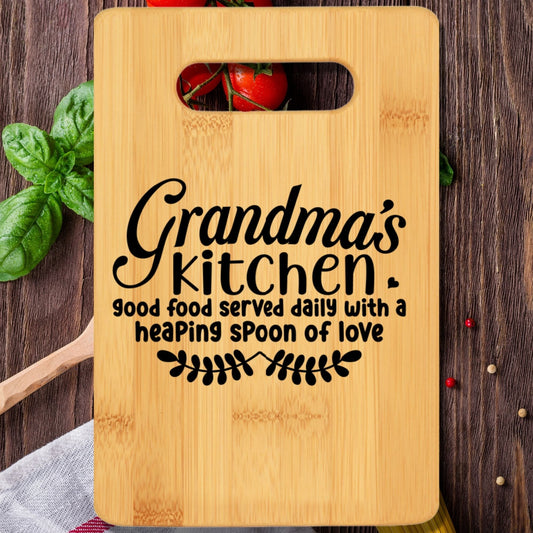 Grandma's Kitchen Good Food Served Daily Cutting Board