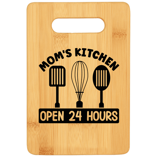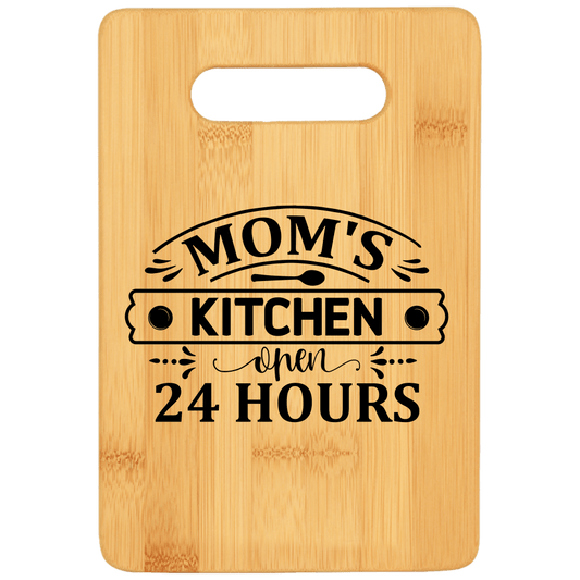 Mom's Kitchen Open 24 Hours Funny Stove Top Cutting Board with Handle