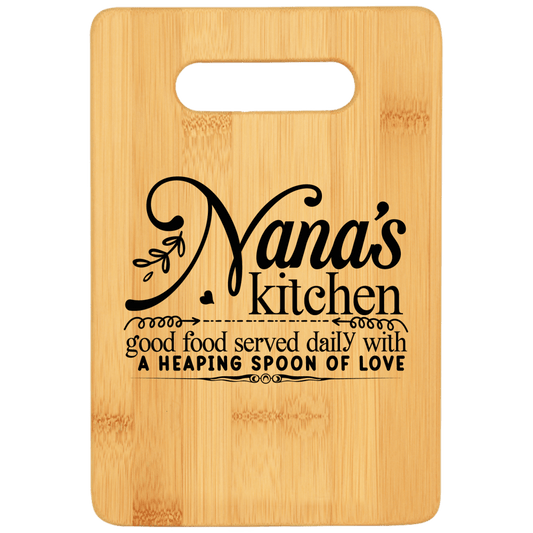 Nana's Kitchen Good Food Served Daily With a Heaping Spoon of Love Funny Stove Top Cutting Board with Handle