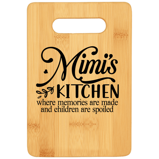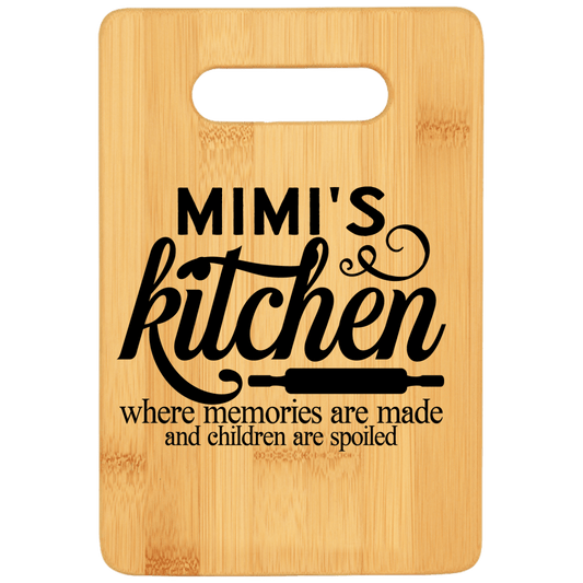 Mimi's Kitchen Where Memories Are Made and Children Are Spoiled Funny Stove Top Cutting Board with Handle