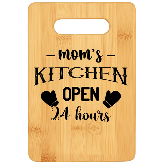 Mom's Kitchen Open 24 Hours Funny Stove Top Cutting Board with Handle v3