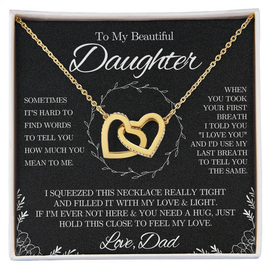 To My Beautiful Daughter from Dad - Interlocking Hearts Necklace - Black and White
