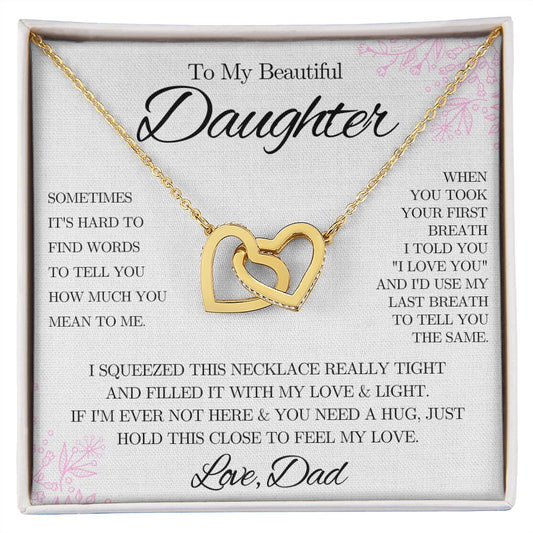 To My Beautiful Daughter from Dad - Interlocking Hearts Necklace - Pink Floral
