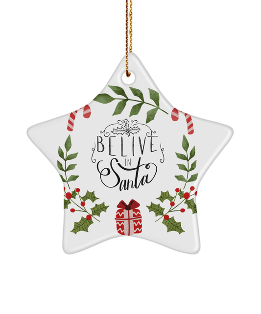 Believe In Santa Funny Christmas Ceramic Ornament for Family Tree Hanging (version 1)