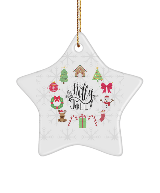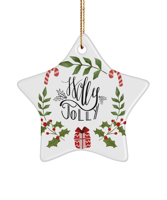 Holly Jolly Funny Christmas Ceramic Ornament for Family Tree Hanging (version 2)