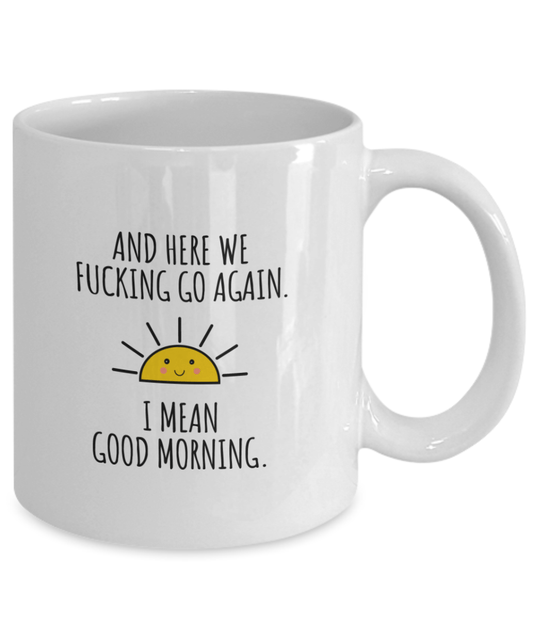 And Here We Fuzzing Go Again I Mean Good Morning Funny Coffee Mug