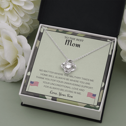 Military Son Gift to Mother Home Is Where You Are Love Knot Necklace