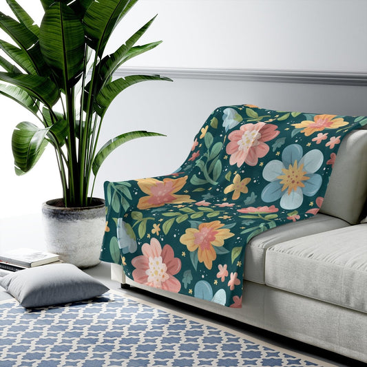 Blooming Flowers Velveteen Plush Blanket - Super Soft, Warm & Cozy