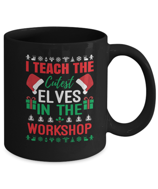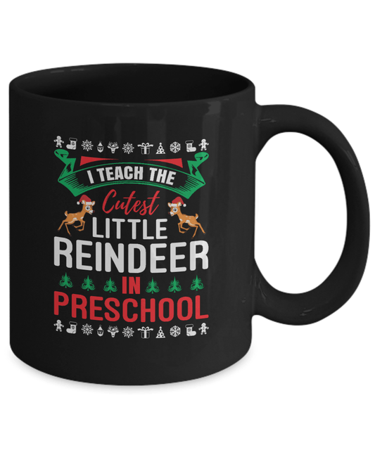 I Teach Cutest Little Reindeer in Preschool Black Mug