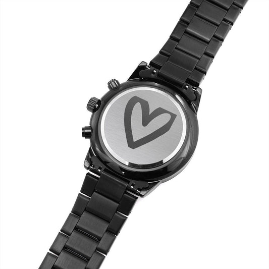 Engraved Heart Black Metal Watch Unique Gift Idea for Fathers Day, Birthday, Christmas, & Anniversary