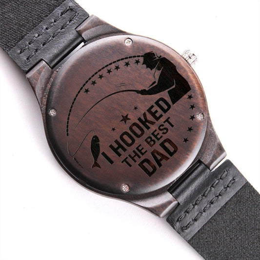 I Hooked the Best Dad Wooden Watch Unique Gift Idea for Fathers Day, Birthday, Christmas, & Anniversary
